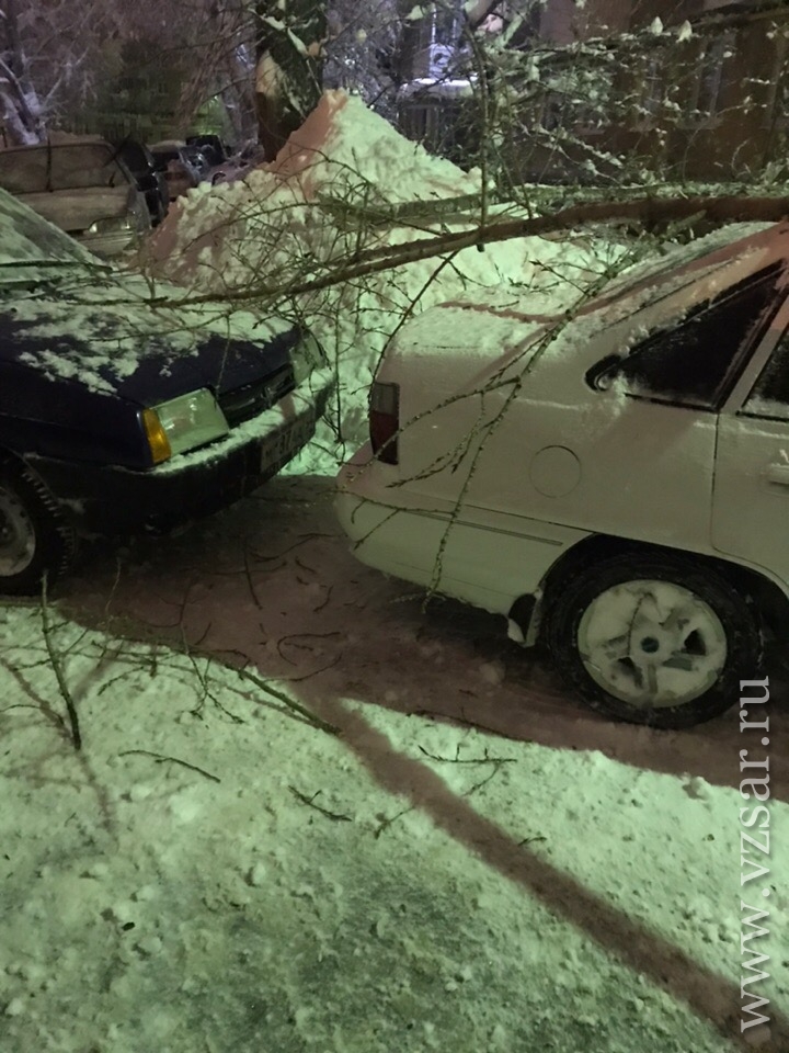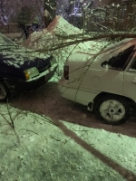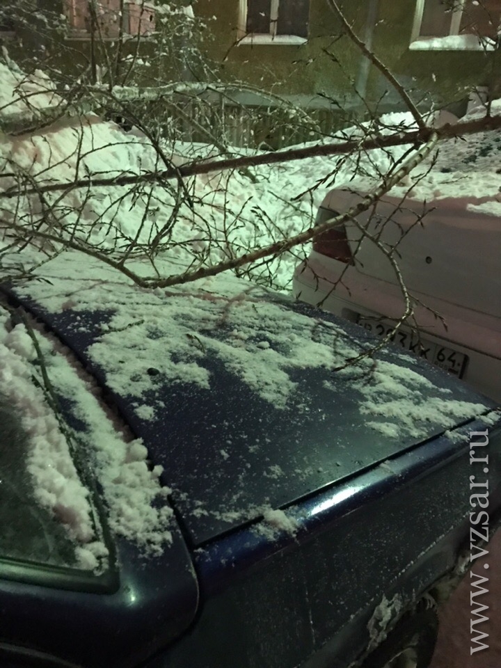 В ночь с 26 на 27 декабря в Ленинском районе Саратова упавшая ветка дерева повредила две машины. Об этом один из пострадавших автовладельцев сообшил в группе "Саратов онлайн" в социальной сети "ВКонтакте".