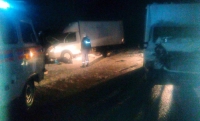 Ехавший в попутном направлении "Форд Транзит" не заметил второй грузовик и наехал на него. В результате водитель "Газели" был зажат балкой и из-за полученых травм скончался до приезда медиков.