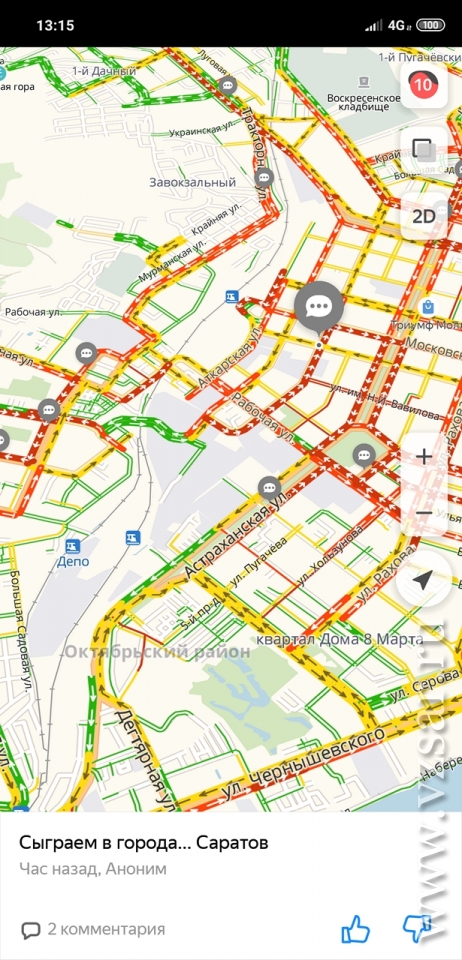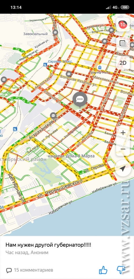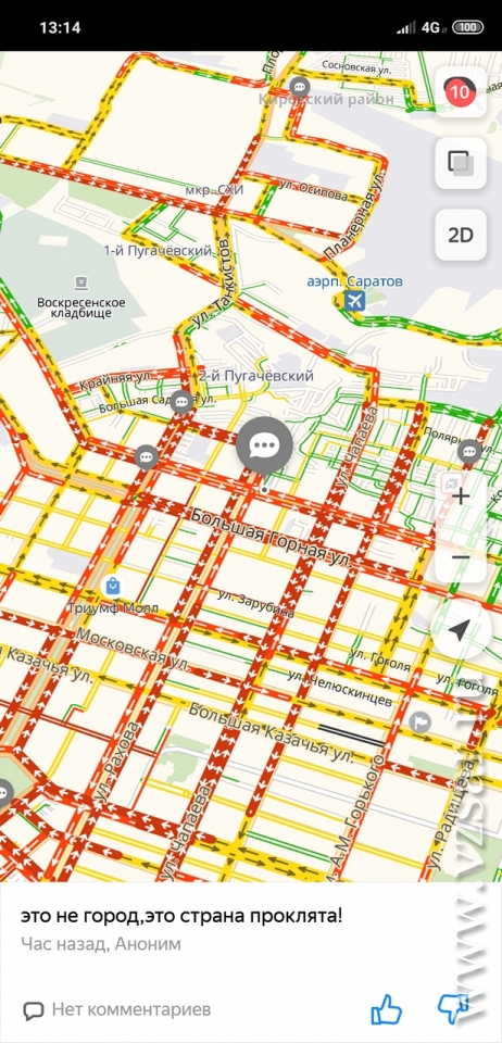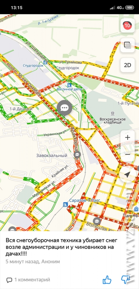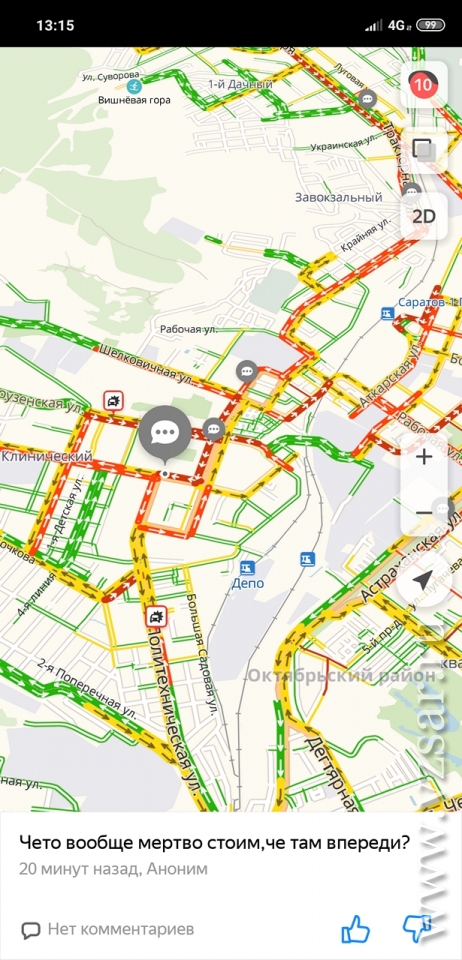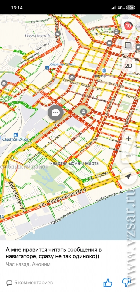 "Цвет настроения красный, машину я купил себе напрасно", – примерно с такими мыслями саратовцы смотрят на Яндекс.Карты, вновь сообщающие о десятибалльных пробках.