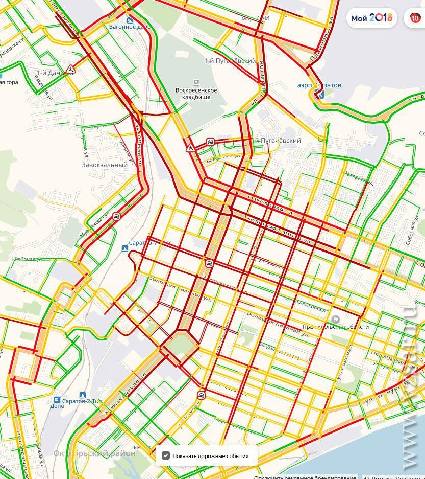 Утреннее счастье на 6-7 баллов продлилось недолго – Саратов вновь попал в одну большую 10-балльную пробку. Об этом свидетельствуют данные сервиса "Яндекс.Карты".