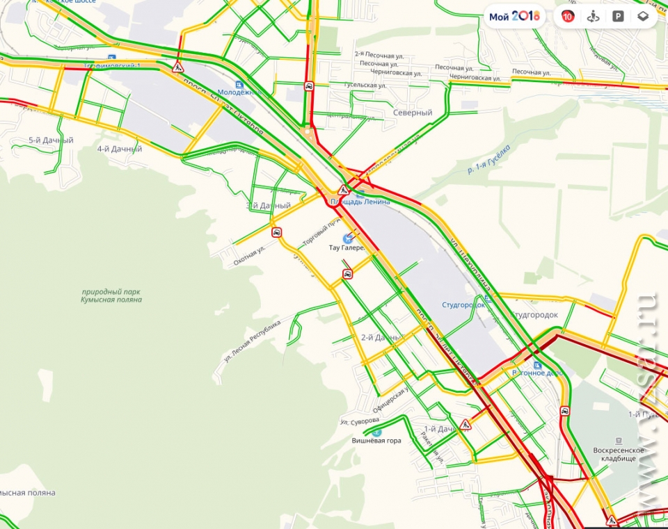 Центр в который раз покраснел и отнюдь не от смущения: встал квадрат Рабочая – Чапаева – Соколовая – Университетская. Сквозь центральные заторы красной линией проходит 5-километровая пробка, начинающаяся от Большой Горной/Мясницкой и заканчивающаяся только на пересечении проспекта 50 лет Октября и Вишневой.