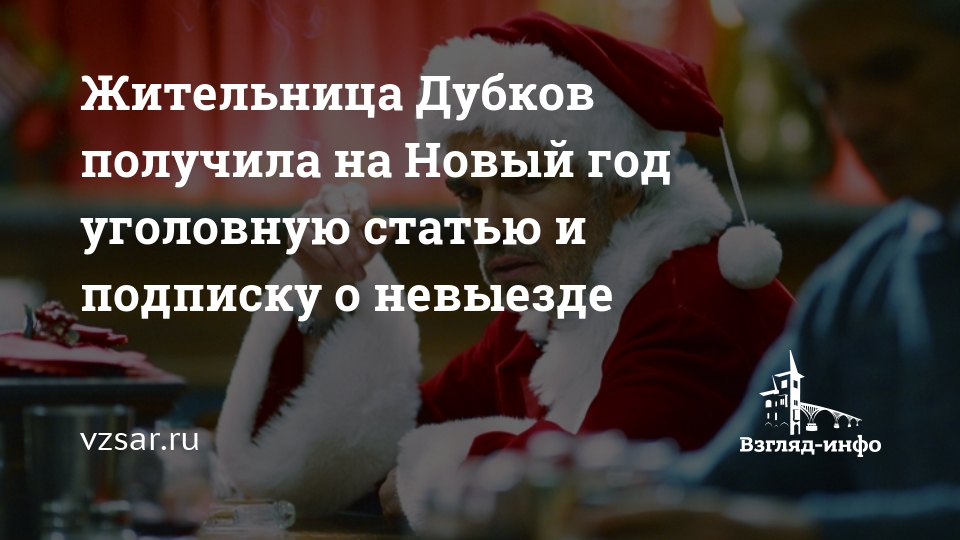 Жительница поселка Дубки Саратовского района "подарила" себе на Новый год подписку о невыезде и уголовную статью. Об этом сообщает ГУ МВД региона.