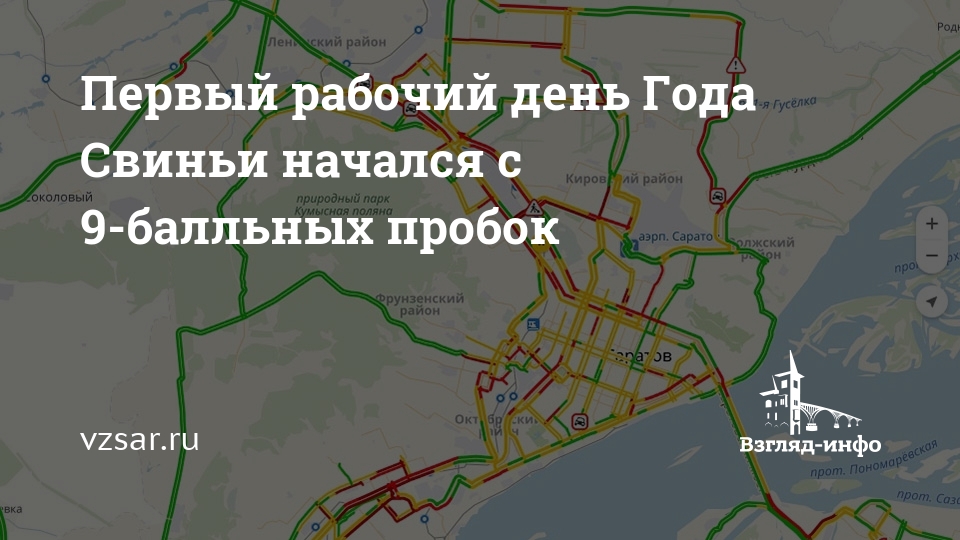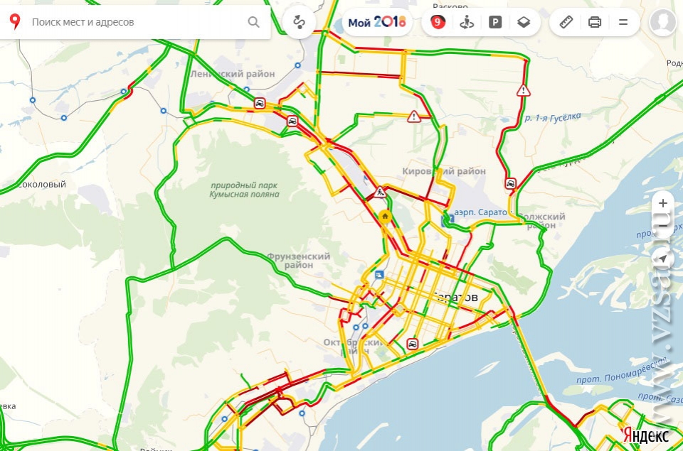 Первый рабочий день года в Саратове начался с девятибалльных пробок. Об этом свидетельствует сервис "Яндекс. Пробки".