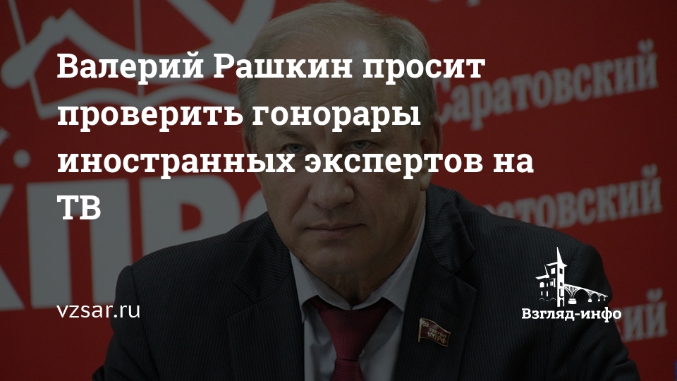 Согласно тексту запроса, провести проверку Рашкин просил еще в октябре 2017 года. Тогда, ссылаясь на материалы "Комсомольской правды", он указал, что месячный заработок украинского политолога Вячеслава Ковтуна со всех шоу на федеральных каналах, финансируемых из бюджета, составляет от 500 до 700 тысяч рублей. Среди других "золотых" экспертов парламентарий указал американского журналиста Майкла Бома и польского журналиста Якоба Корейбу.