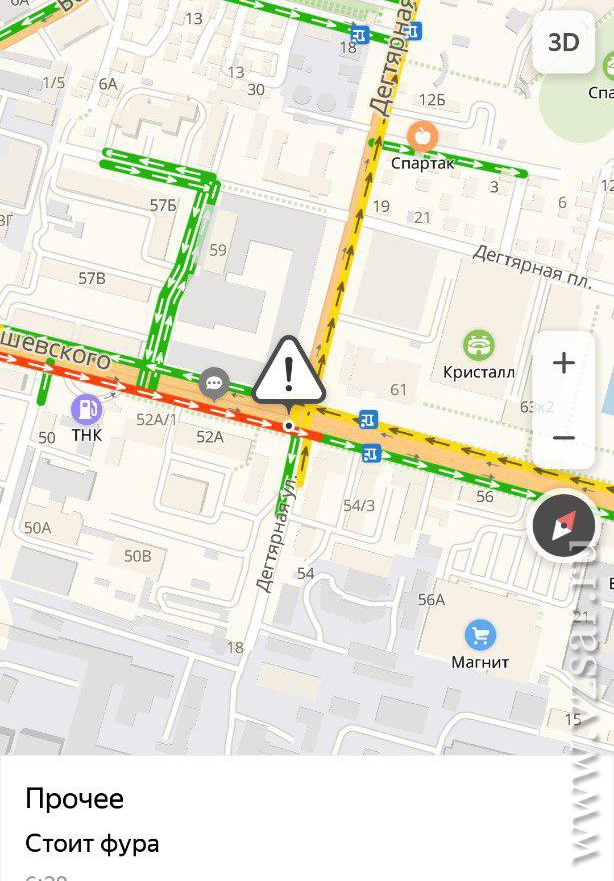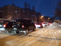 Особые страдания испытывают саратовцы, которые добираются до работы по улице Чернышевского. Неподалеку от Дегтярной припарковался дальнобойщик с номерами Московской области (50 регион). Фура перегородила половину проезжей части, и в результате автобусы, троллейбусы и прочие транспортные средства растянулись на несколько километров.