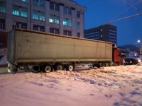 "Спонсор сегодняшней пробки из Заводского района - фура из Московской области. Фура из Московской области: "И пусть весь мир подождет", - грустно шутит корреспондент ИА "Взгляд-инфо", идущий на работу пешком и запечатлевший картины утреннего коллапса.