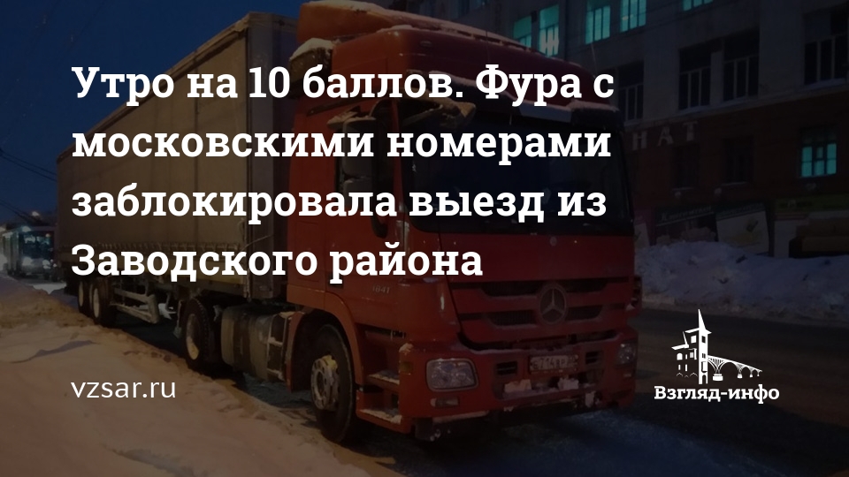 Утро на 10 баллов. Фура с московскими номерами заблокировала выезд из Заводского района