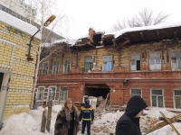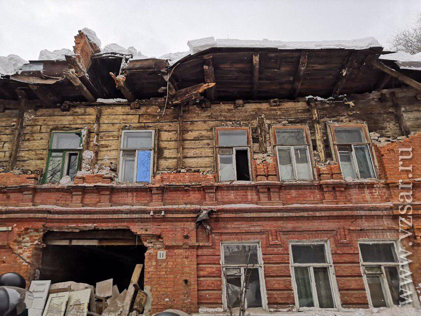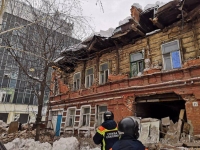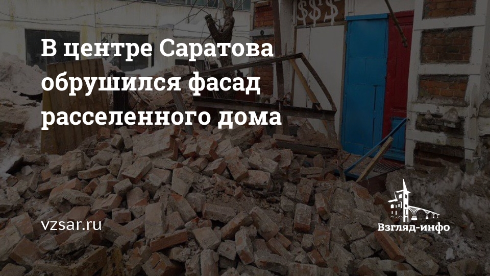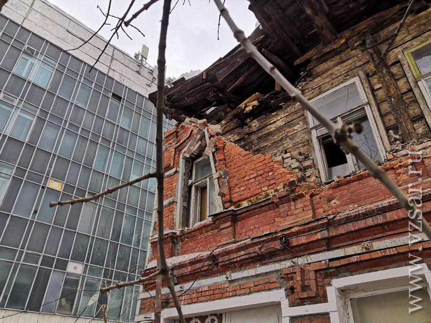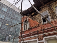 Сегодня в Саратове произошло обрушение части кровли и обложенного кирпичом фасада дома № 11 в Нескучном переулке. Об этом сообщает областная служба спасения.