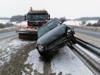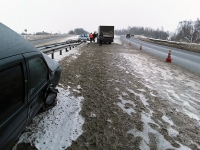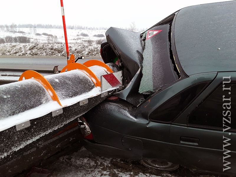 Затем "Приору" отбросило на трех дорожных рабочих, и под занавес она налетела на снегоуборщик "Volvo". Пыл саратовца охладило только барьерное ограждение.