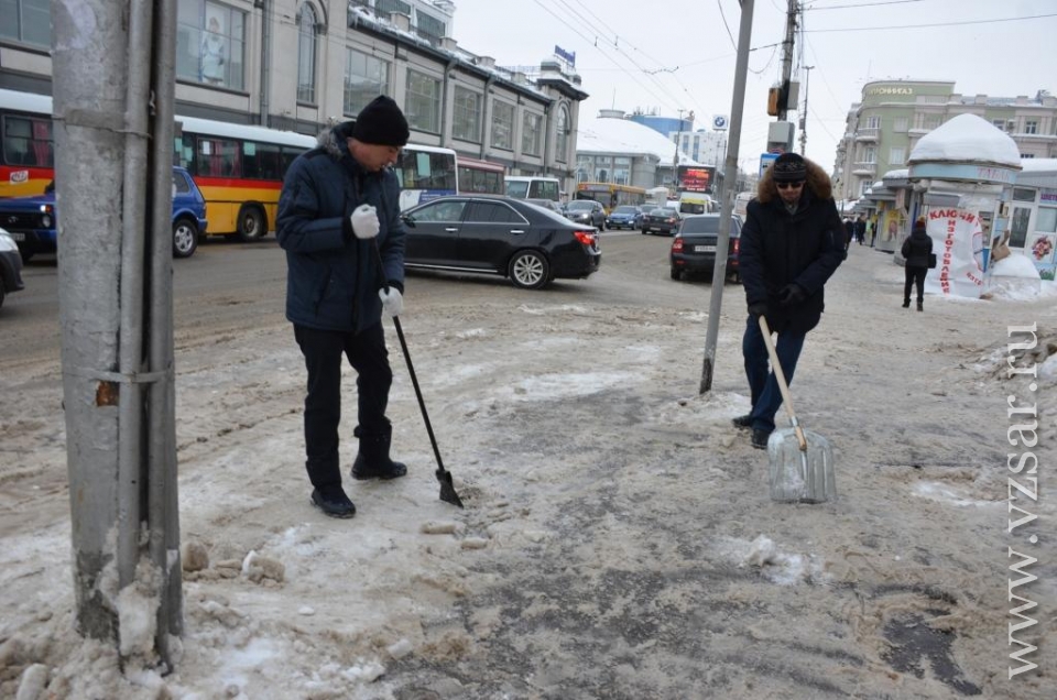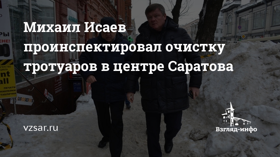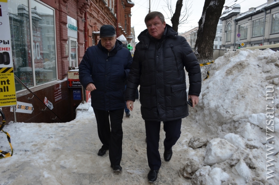 Сегодня глава Саратова Михаил Исаев и его заместитель по городскому хозяйству Максим Сиденко проинспектировали центральные улицы на предмет очистки тротуаров.