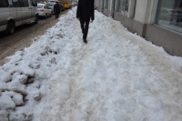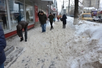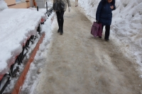 "Мы сейчас прошли по центральным улицам города. Видно, что на дорогах работают звенья, но тротуары расчищены частично. Одни владельцы магазинов и юридические лица занимаются уборкой своей прилегающей территории, а у других - наросшая наледь и по колено снега.