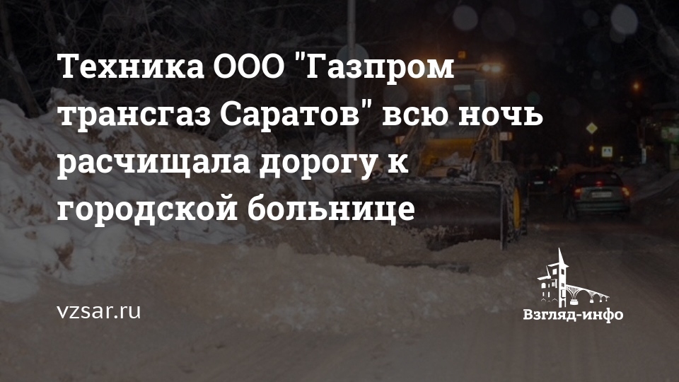 Сегодня ночью по решению генерального директора ООО "Газпром трансгаз Саратов", депутата Саратовской областной думы Леонида Чернощекова спецтехника предприятия чистила дорогу, ведущую к Саратовской городской клинической больнице № 8.
