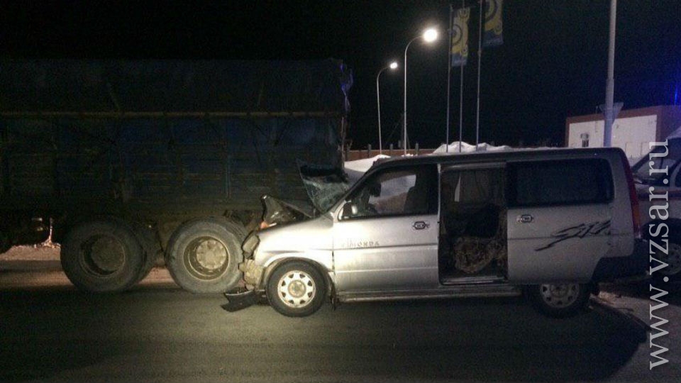 На выезде из Саратова микроавтобус врезался в "Камаз". Пострадали четверо