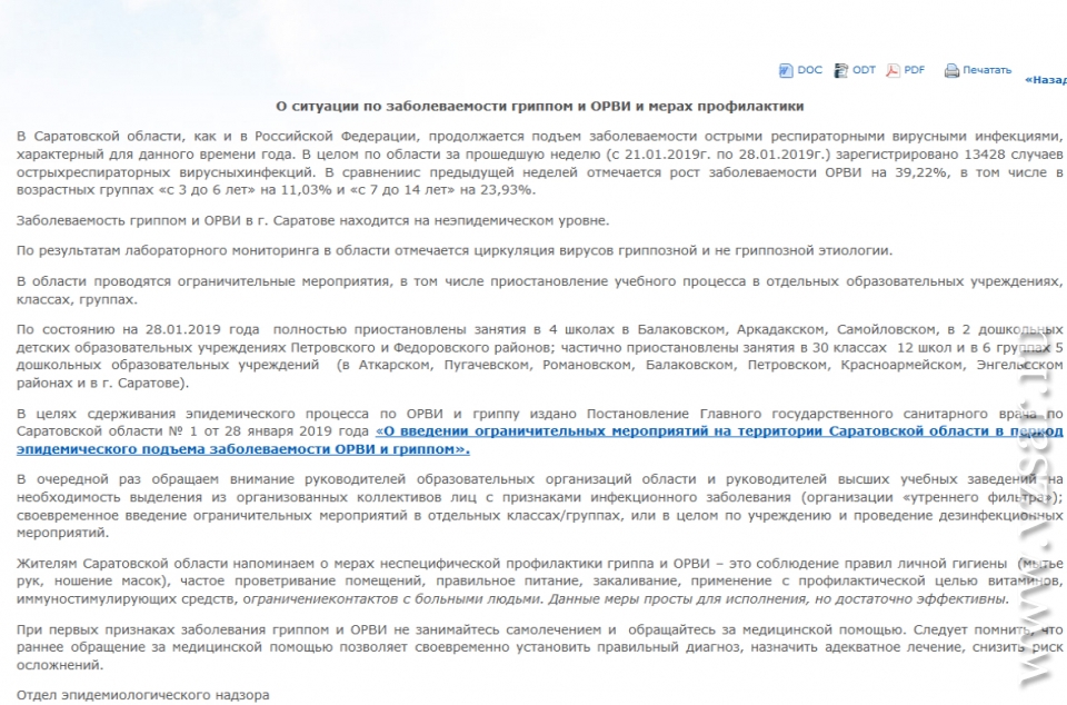 В Саратове заболеваемость пока находится на неэпидемическом уровне. В области проводятся ограничительные мероприятия, в том числе приостановление учебного процесса в отдельных образовательных учреждениях, классах и группах, подчеркивают специалисты.