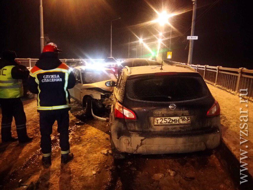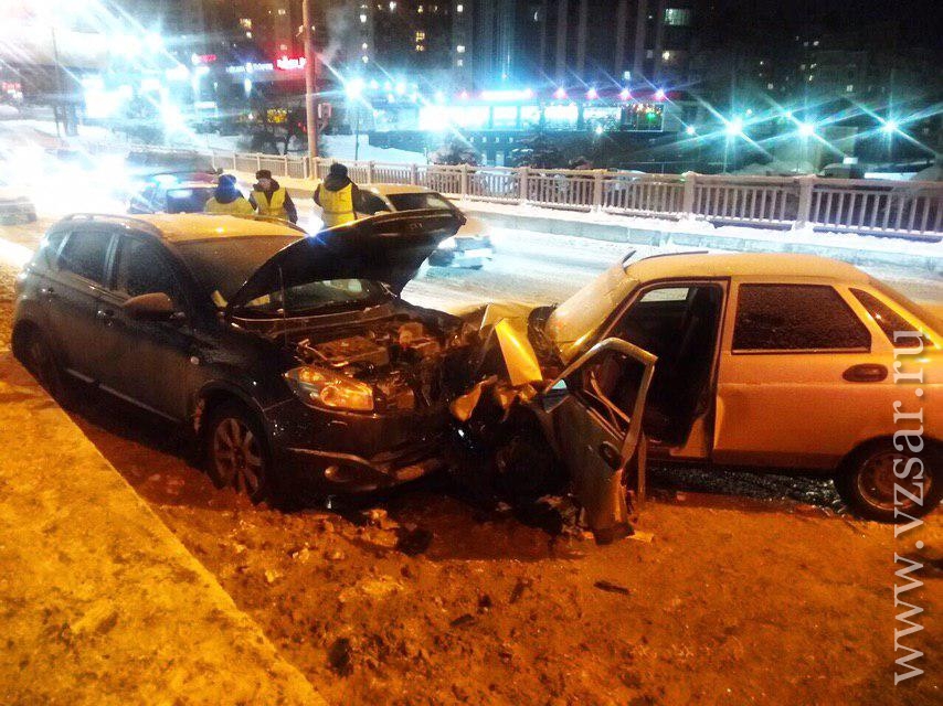 Сегодня вечером произошла авария на мосту Саратов-Энгельс. Как сообщает областная служба спасения, лоб в лоб столкнулись "Ниссан Кашкай" и "ВАЗ-2110".