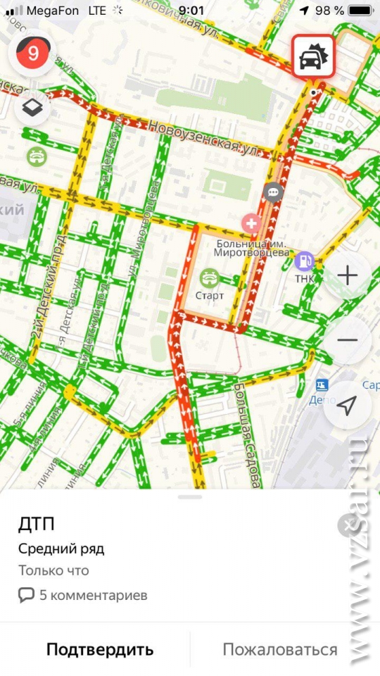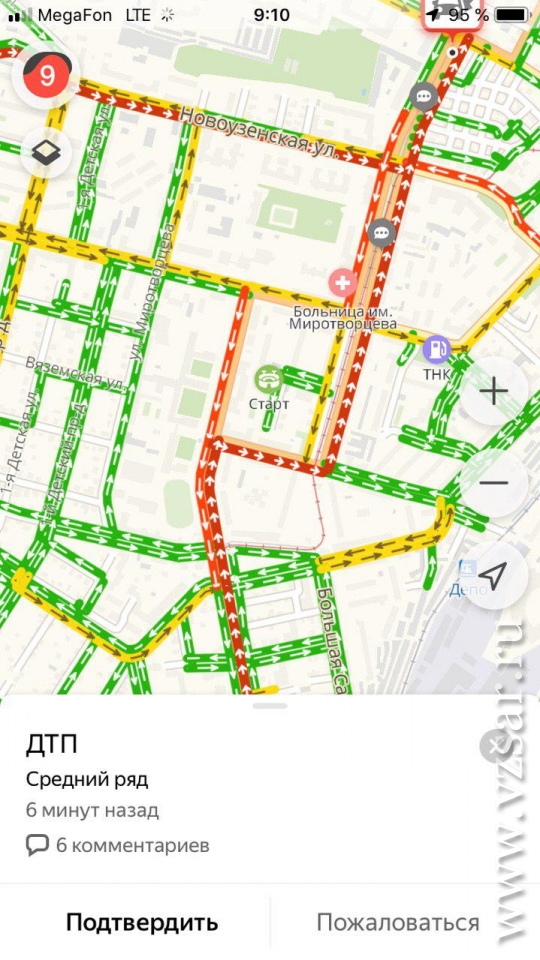 Сегодня, после небольшой передышки, жители Саратова вновь встали в многокилометровых пробках. В настоящее время сервис "Яндекс.Пробки" оценивает ситуацию на дорогах в 9 баллов.