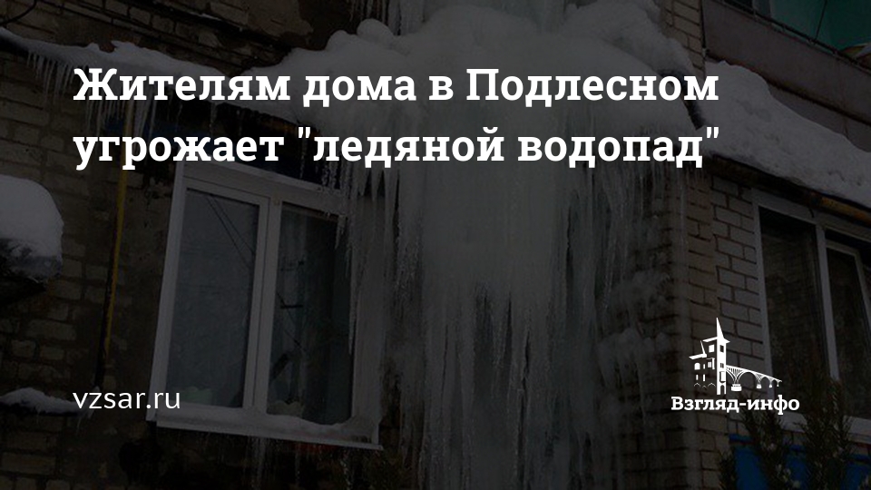 Безопасности жизни владельцев квартир в доме в селе Подлесное Марксовского района Саратовской области угрожает скапливающийся на карнизе лед. Об этом ИА "Взгляд-инфо" сообщила местная жительница Ольга Литвиненко.