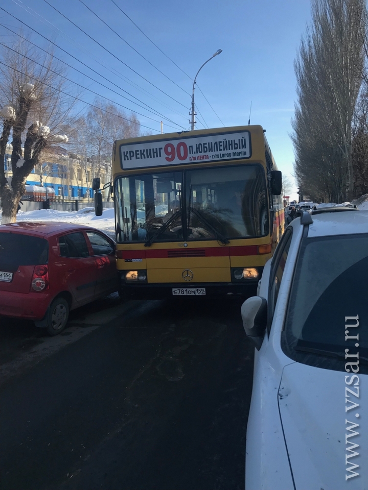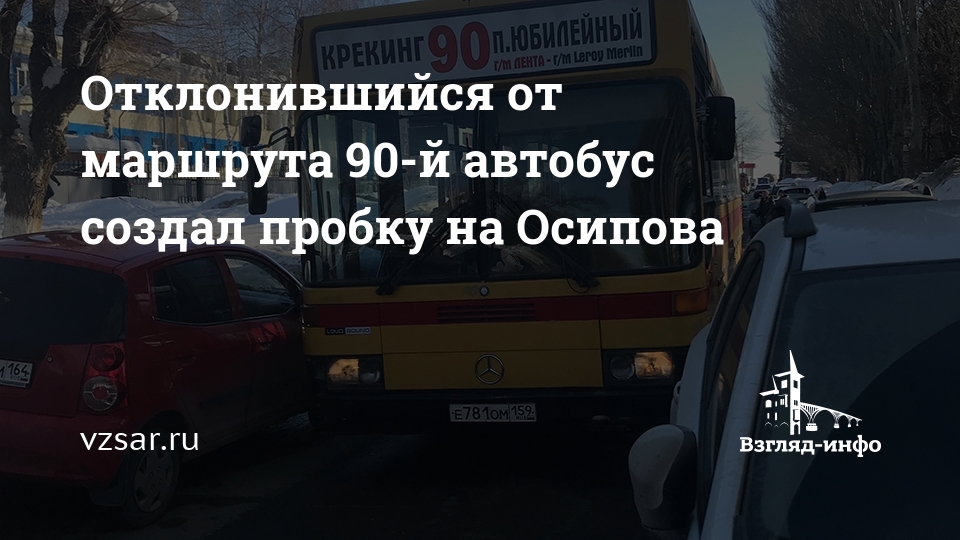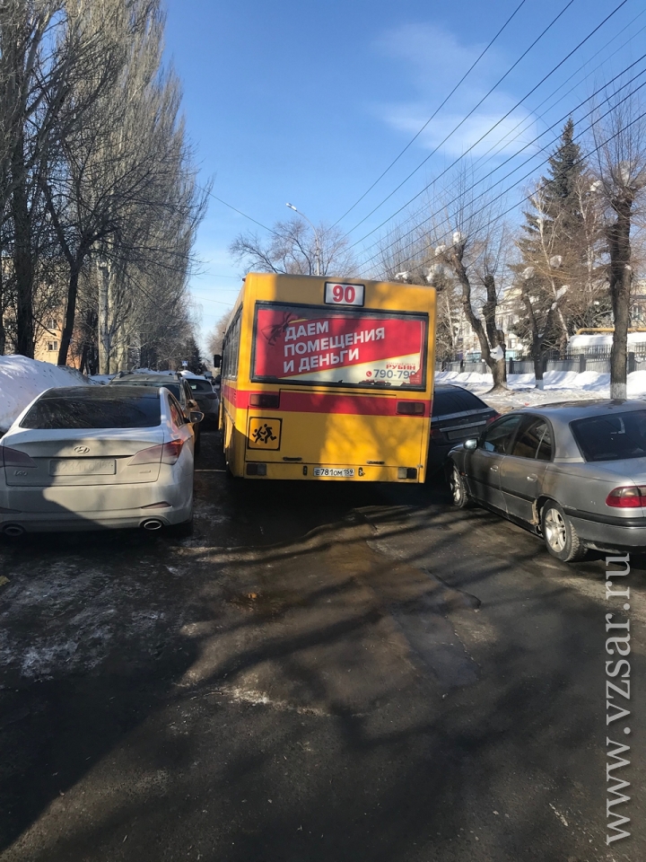 Сегодня в Саратове водитель автобуса № 90 съехал со своего маршрута и в результате устроил пробку на улице Осипова.