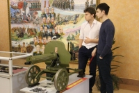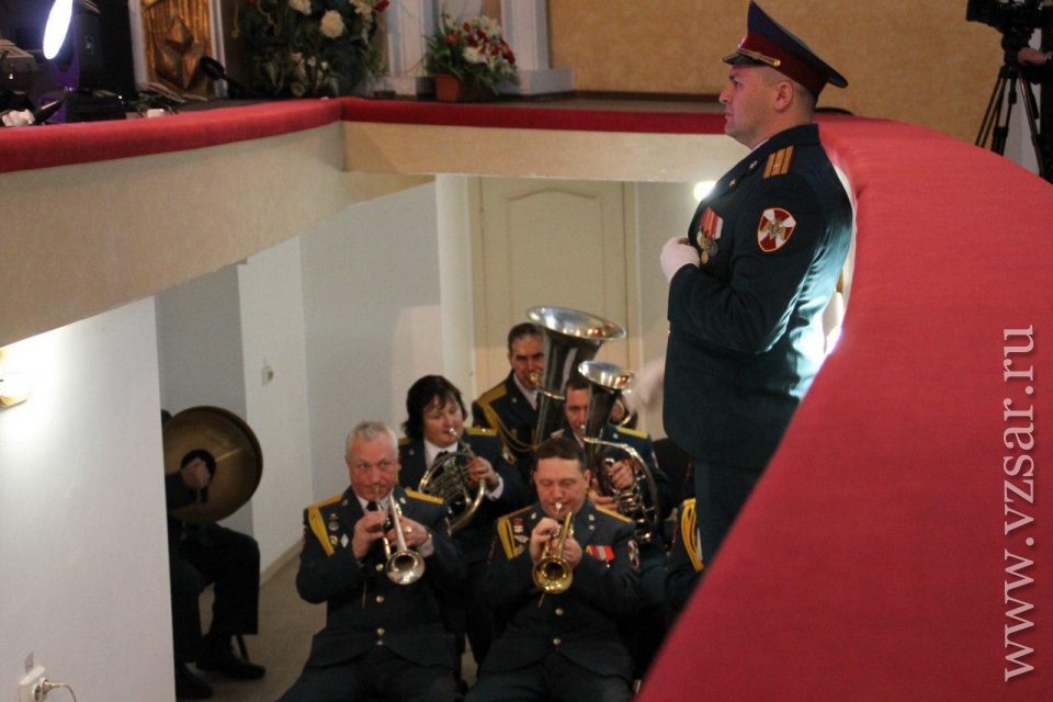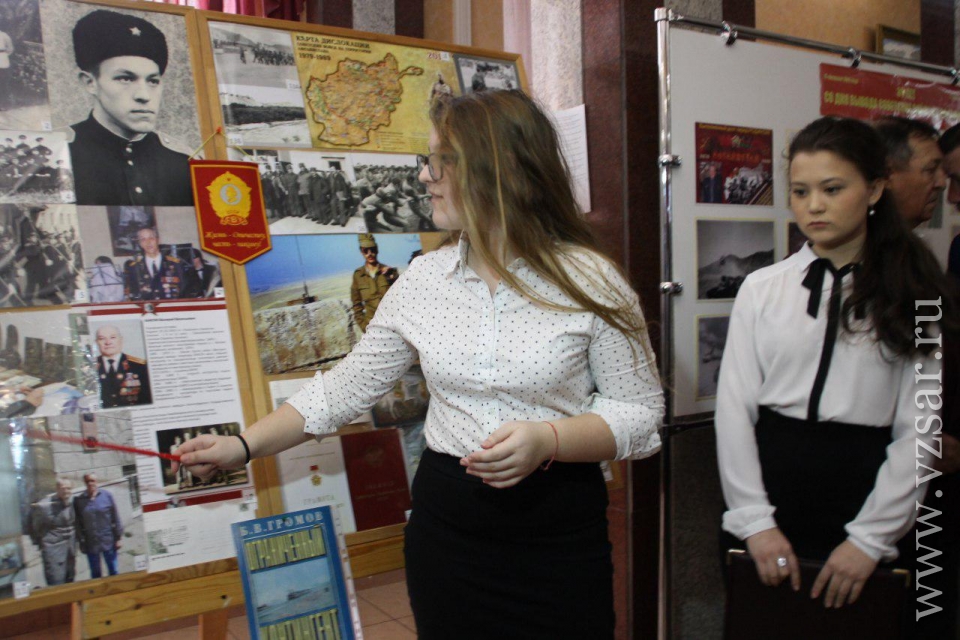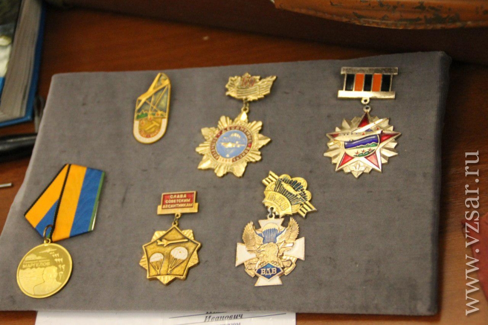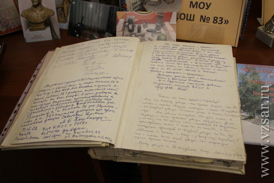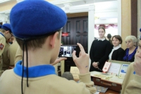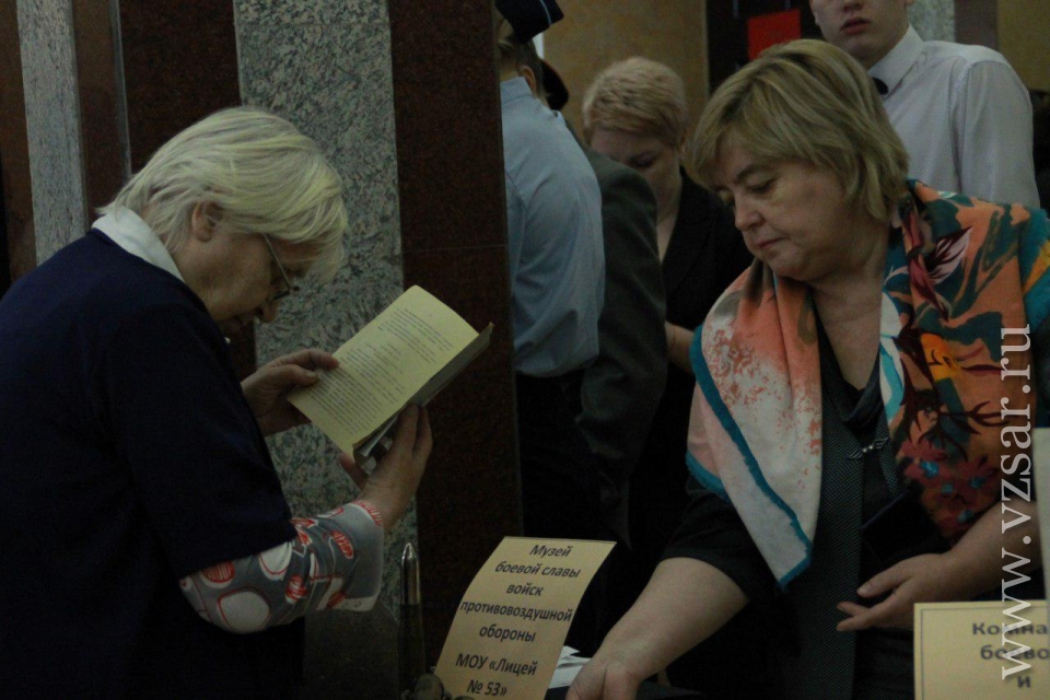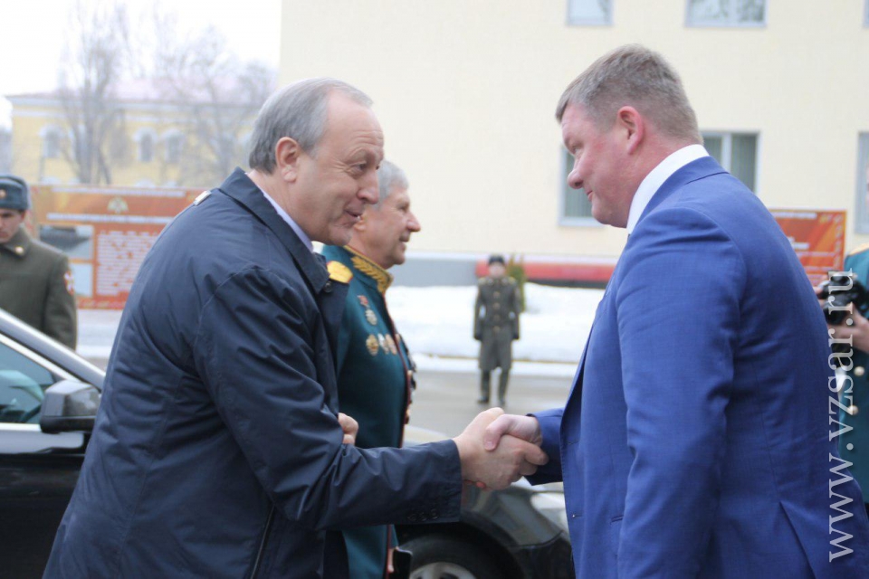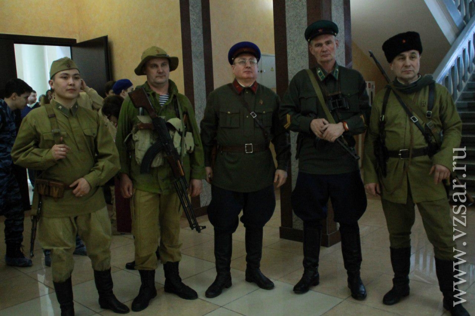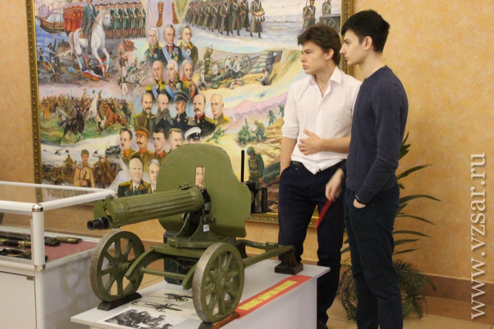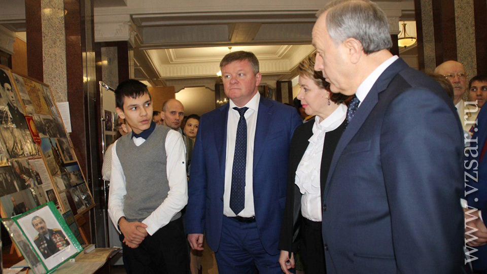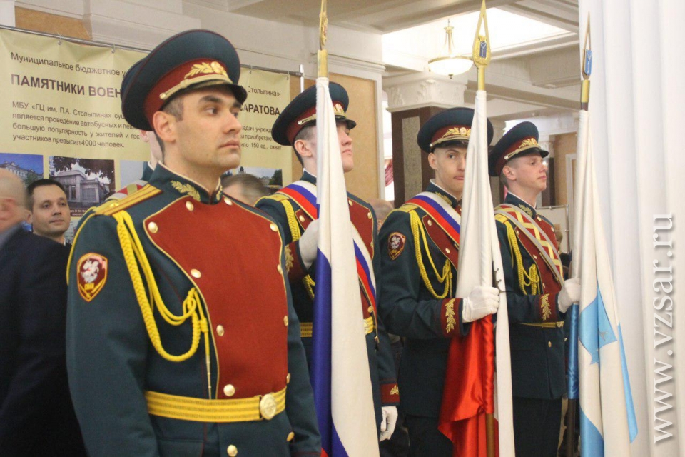 Перед началом губернатор Валерий Радаев осмотрел небольшую выставку в солдатском клубе института. Школьники показали ему фотографии из личного архива Героев Российской Федерации и Советского Союза Евгения Долгина, Марины Расковой, Бориса Громова и других. Поисковые отряды представили свои находки с полей сражений Великой Отечественной войны, а военнослужащие военную форму различных времен.