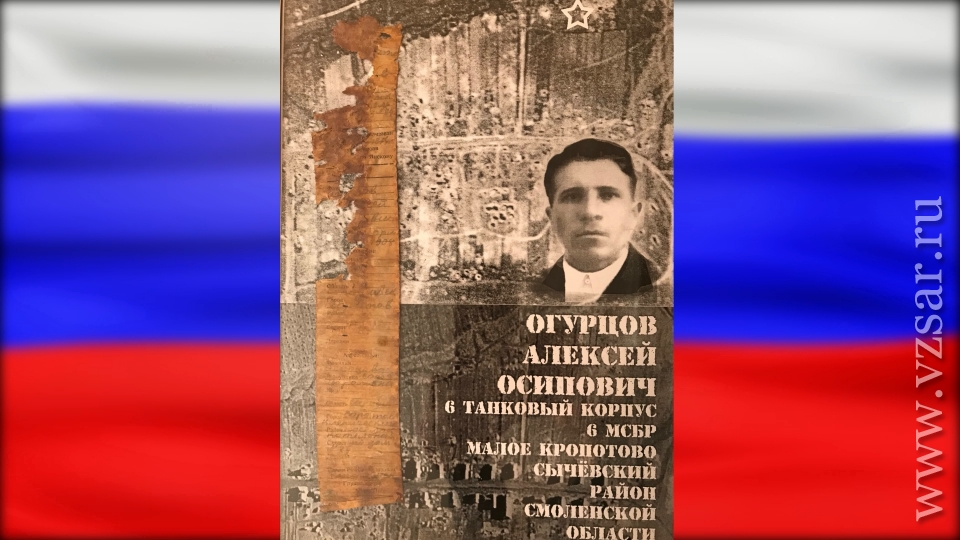 В ноябре 1942 года во время наступательной операции "Марс" красноармеец из Саратова Алексей Осипович Огурцов пропал без вести на территории Сычевского района Смоленской области.