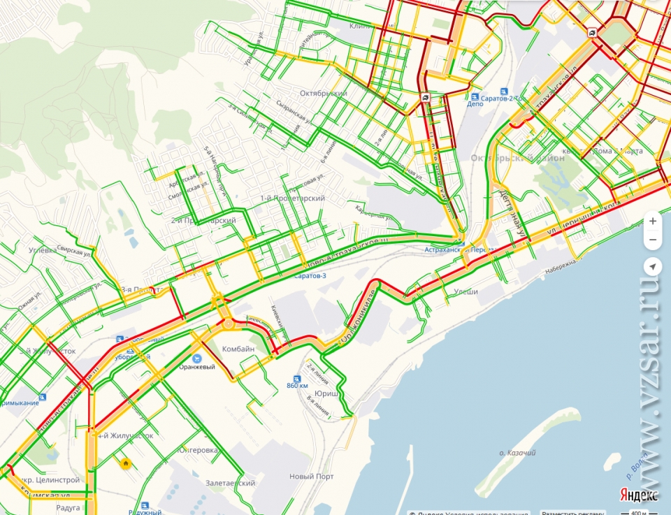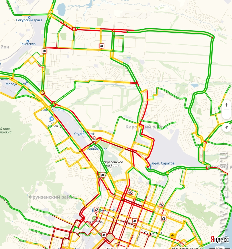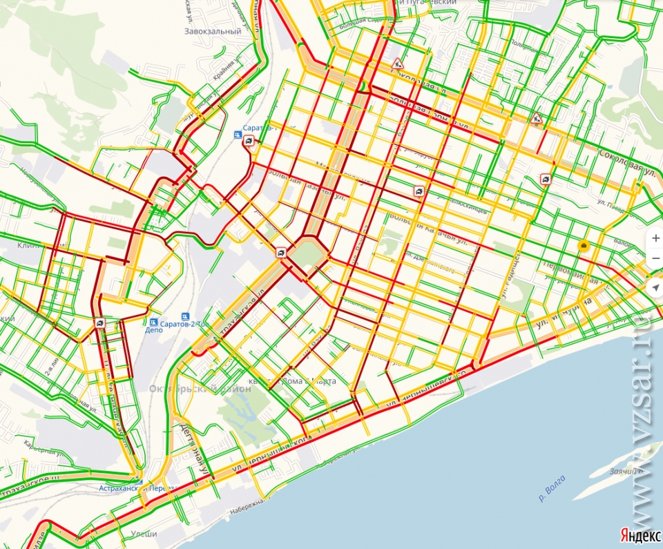 Улица Чапаева стоит на участке от Соколовой до Чернышевского. На параллельной Рахова дела обстоят не лучше – затор от Соколовой до Новоузенской. Астраханская "обрадует" пробкой от Сенного до Детского парка.