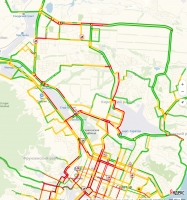 Затор связан с переметами в районе Кумысной поляны (от развилки в стороны Ленинского, Заводского и Октябрьского районов) и временным перекрытием движения на данном участке, сообщает городская ГИБДД.