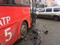 Как сообщили ИА "Взгляд-инфо" очевидцы, предположительно, виновником аварии стал водитель автомобиля "ВАЗ 2114", который не уступил дорогу 284-му автобусу, выезжая с улицы Некрасова. После столкновения "14-я" проехала около 20 метров, затем водитель развернул автомобиль и оставил его на обочине.