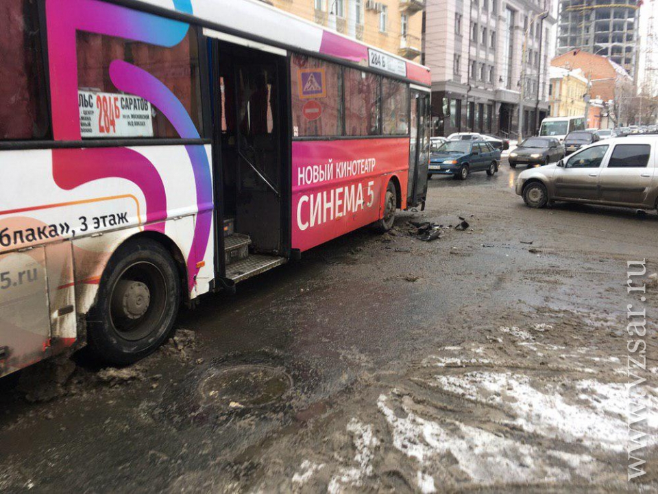 В Саратове около часа назад на пересечении улиц Московская и Некрасова произошло ДТП с участием легковушки и пассажирского автобуса.
