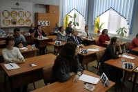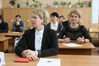 В актовом зале Валерий Радаев выступил с напутственным словом: "Это очень важно, что вы все пришли на экзамен с хорошим настроем. Когда приходишь в школу, совершенно по-иному себя чувствуешь. Третий год подряд родители садятся за парты, чтобы на себе испытать, через что предстоит пройти их детям. Эта традиция объясняет, почему почти 80% наших выпускников поступают после школы в вузы. Не требуй от других то, чего не можешь сам. Решив непростые задачи и справившись с ними, родители стимулируют детей усердно готовиться и нацеливаться на высокий результат. Экзамен - испытание волнующее и очень ответственное. Уверен, сегодня двоек не будет!".