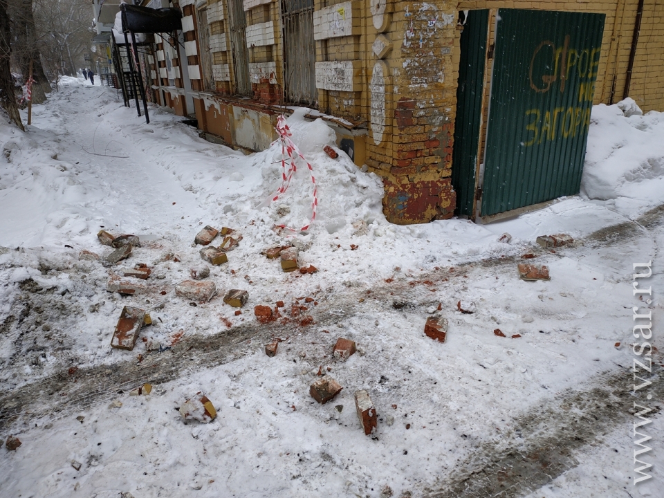 Сегодня кирпичи упали с двухэтажного дома № 75 на улице Мичурина.