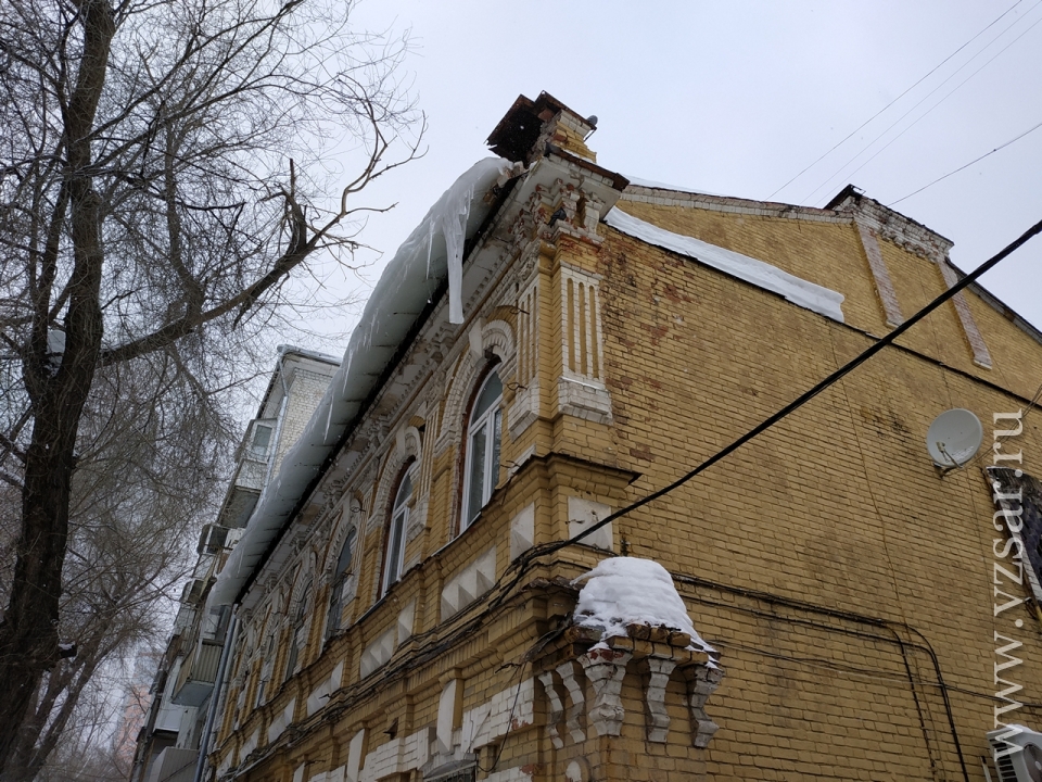 Читатели ИА "Взгляд-инфо" сообщают еще об одном здании дореволюционной постройки в центре Саратова, которое рушится от отсутствия ремонта и чистки крыши.