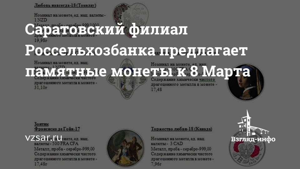 Саратовский филиал Россельхозбанка предлагает памятные монеты к 8 Марта