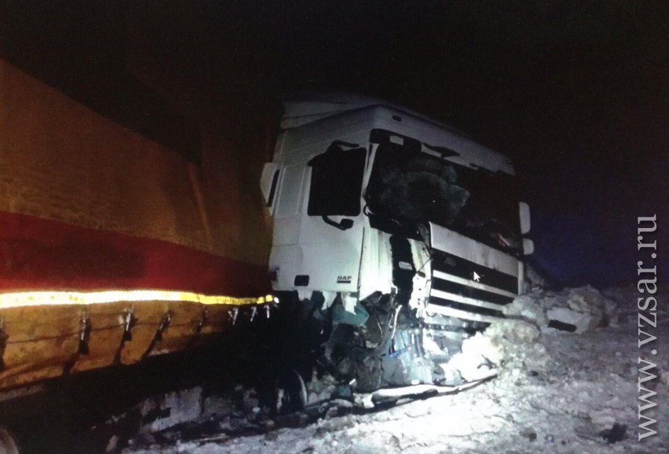 ДТП произошло в 18.30 на 358 км дороги "Сызрань – Саратов – Волгоград". 43-летний водитель грузовика "ДАФ" с полуприцепом врезался в фуру "Ивеко" под управлением 31-летнего мужчины. В результате с травмами госпитализировали водителя "Ивеко".
