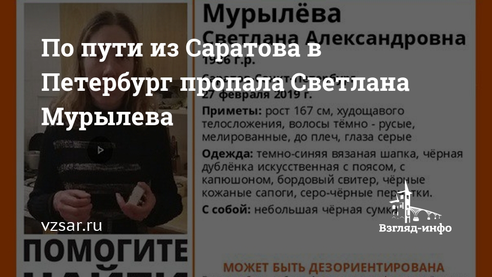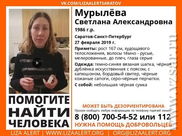 Светлана Александровна пропала по пути из Саратова в Санкт-Петербург 27 февраля.