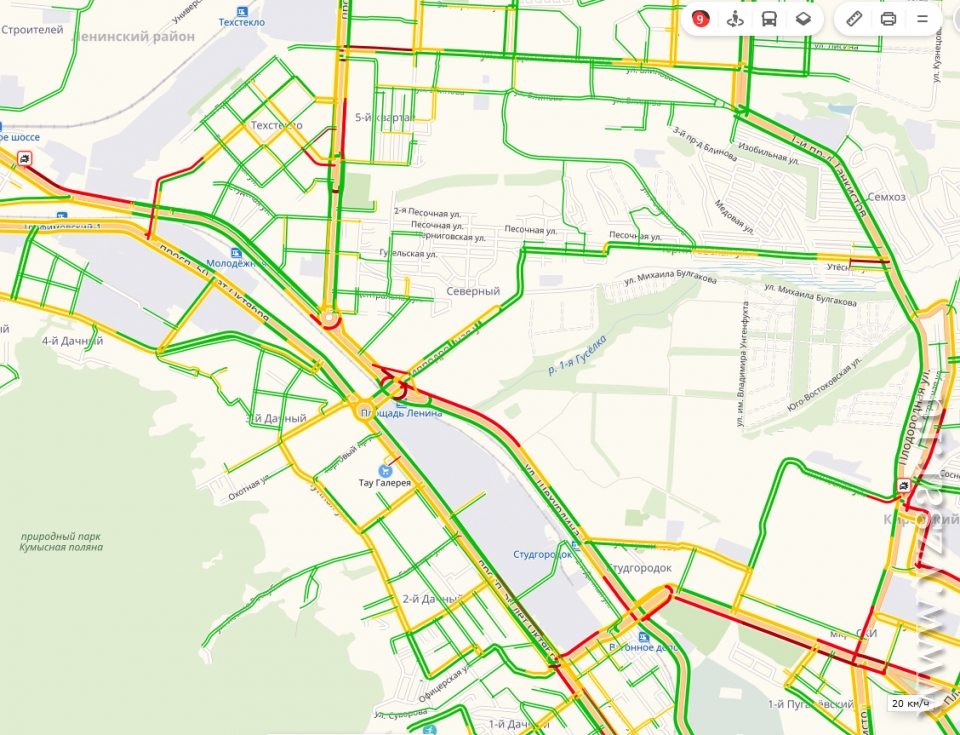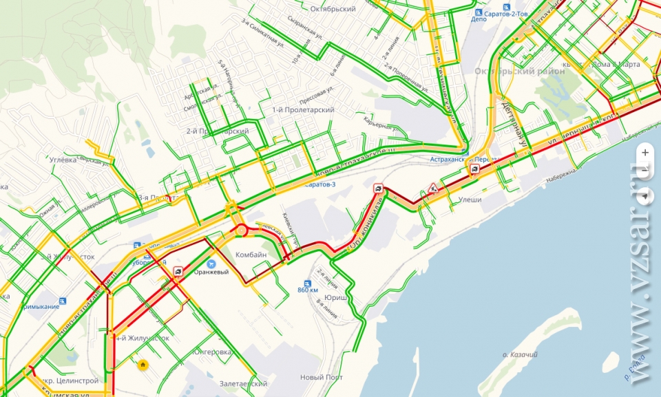 Как сообщает сервис "Яндекс.Карты", проблемы наблюдаются на трех параллельных улицах: Чапаева, Рахова и Астраханская. Пробка на них начинается от улицы Соколовая. Полностью парализована Университетская, а на половине длины, от Московской вниз к Волге – Максима Горького.