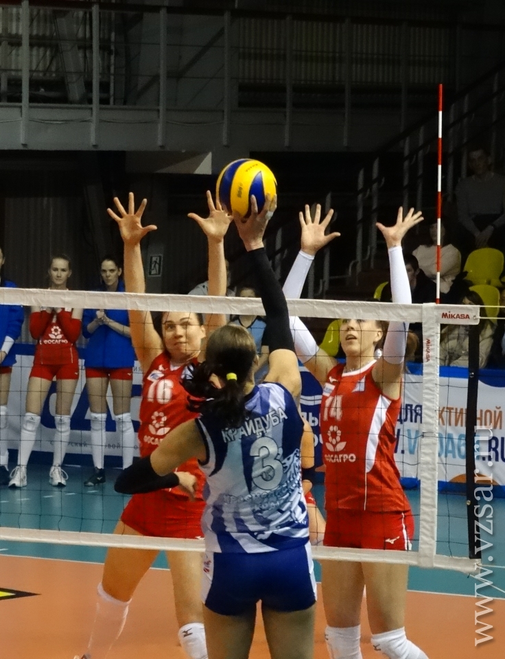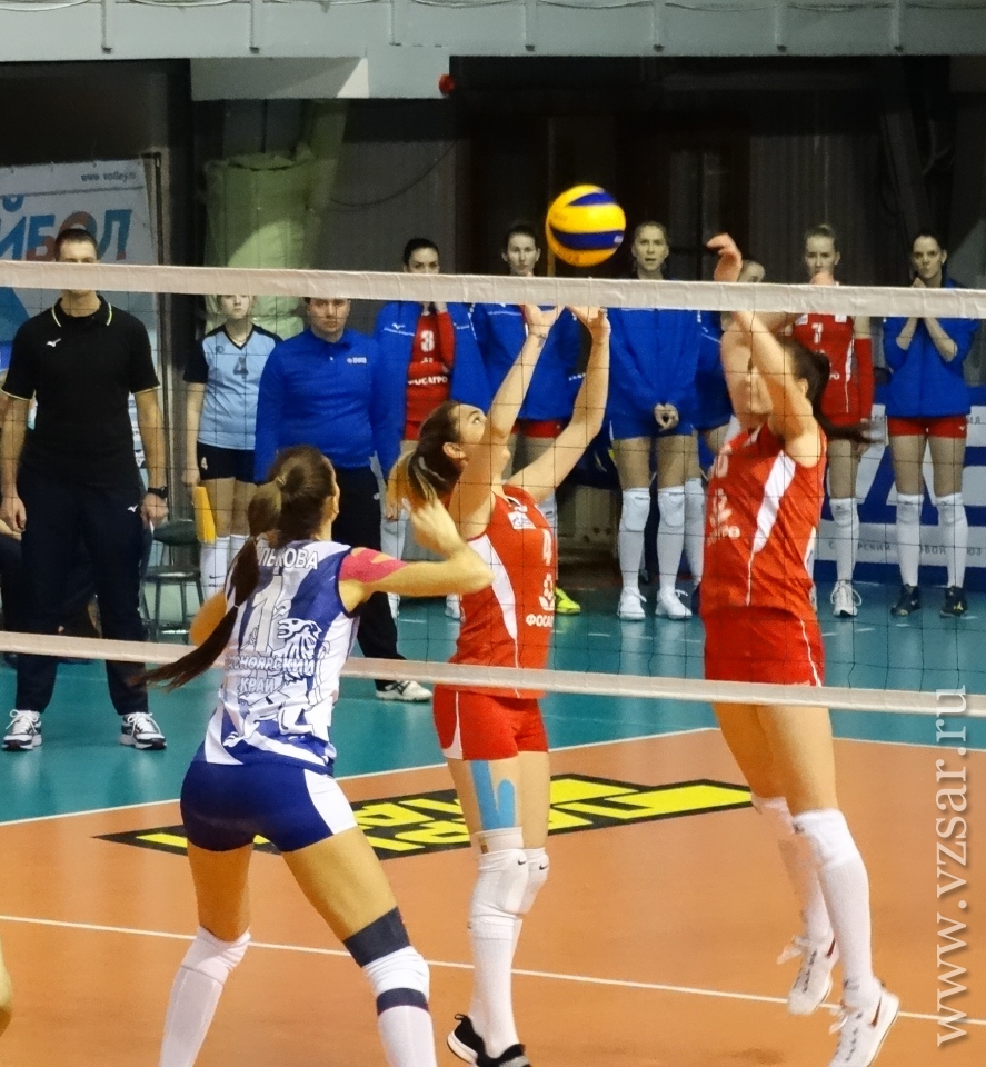 Гости, которыми руководит бывший главный тренер саратовской команды Юрий Маричев, в первой партии сразу ушли вперед и выиграли 25:15. Во втором сете саратовчанки имели два сет-бола, но проиграли 28:30, в третьем не смогли навязать такой же борьбы, хотя очень старались - 20:25.