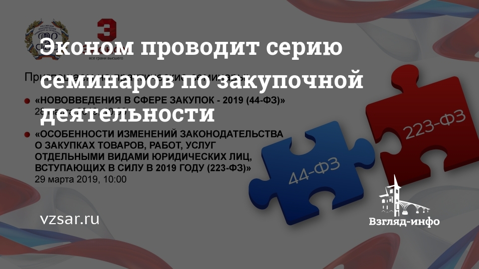 Эконом приглашает всех желающих на практические семинары "Нововведения в сфере закупок – 2019 год" и "Особенности изменений законодательства о закупках товаров, работ, услуг отдельными видами юридических лиц, вступающих в силу в 2019 году".