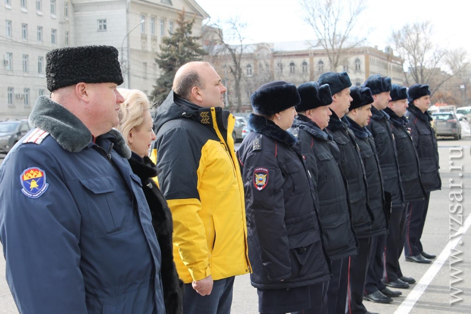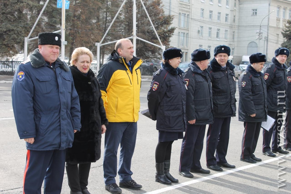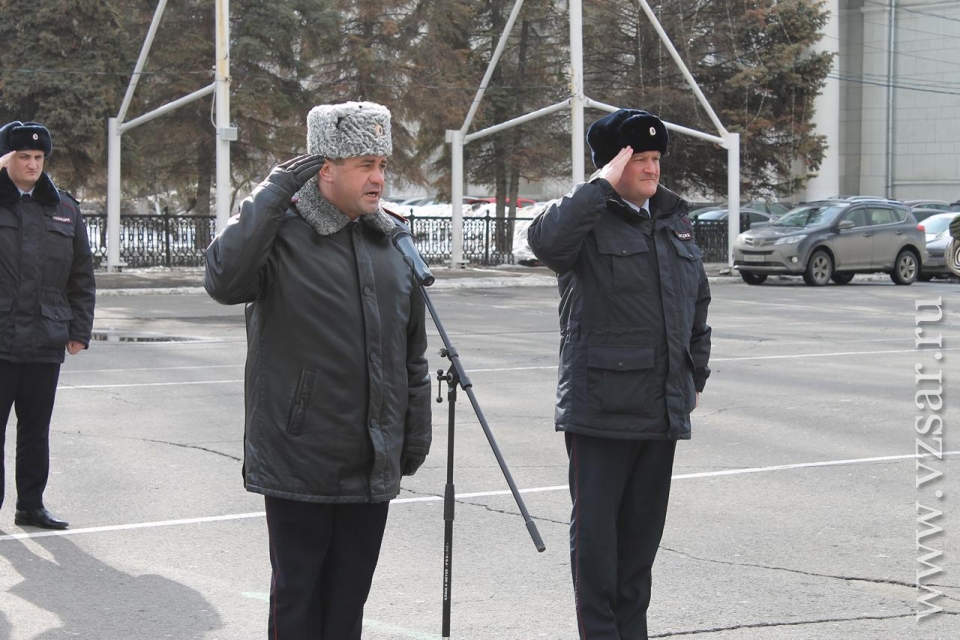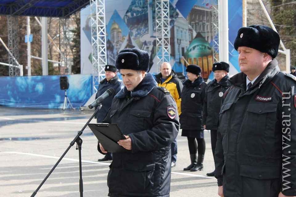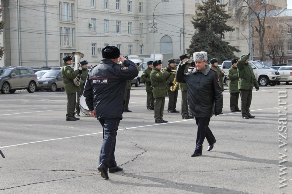 Сегодня на Театральной площади под руководством начальника УМВД по Саратову Андрея Чепурного состоялся общегородской гарнизонный строевой смотр и развод полицейских нарядов, заступающих на службу по охране общественного порядка на территории города.