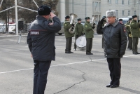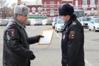 В конце смотра отличившиеся сотрудники полиции получили благодарственные грамоты. После строевого прохождения полицейских по площади наряды были направлены на охрану общественного порядка.