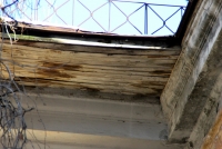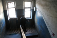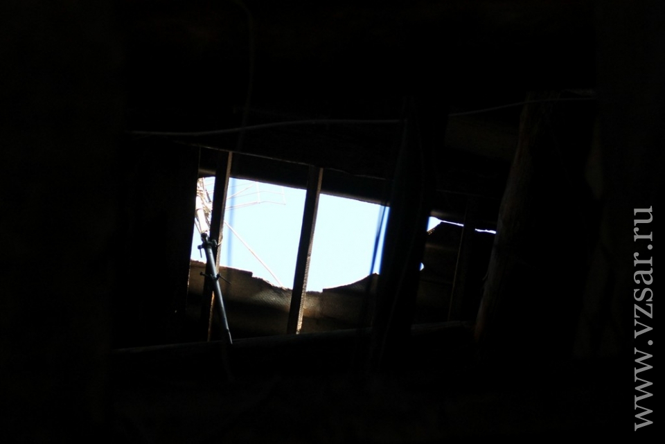 Пенсионер Виталий Алексеевич пригласил корреспондента на экскурсию в дом № 162. Внутри подъезды оказались еще хуже, чем снаружи. А сквозь дыры в крыше на самом деле видно голубое небо.
