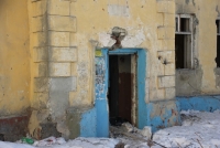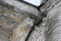 Жилые трехэтажки № 164 и № 168 не отличаются практически ничем. Те же трещины, выпадающие кирпичи, в подъездах разбиты окна и дыры в полах – здания выглядят очевидно аварийными, хотя формально и не признаны таковыми.