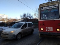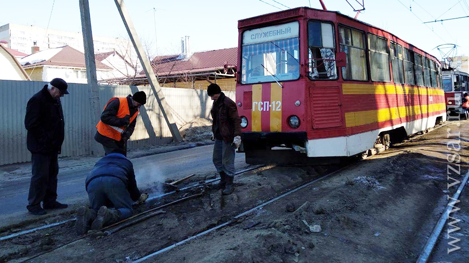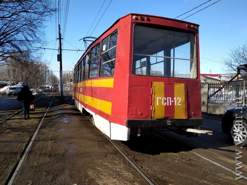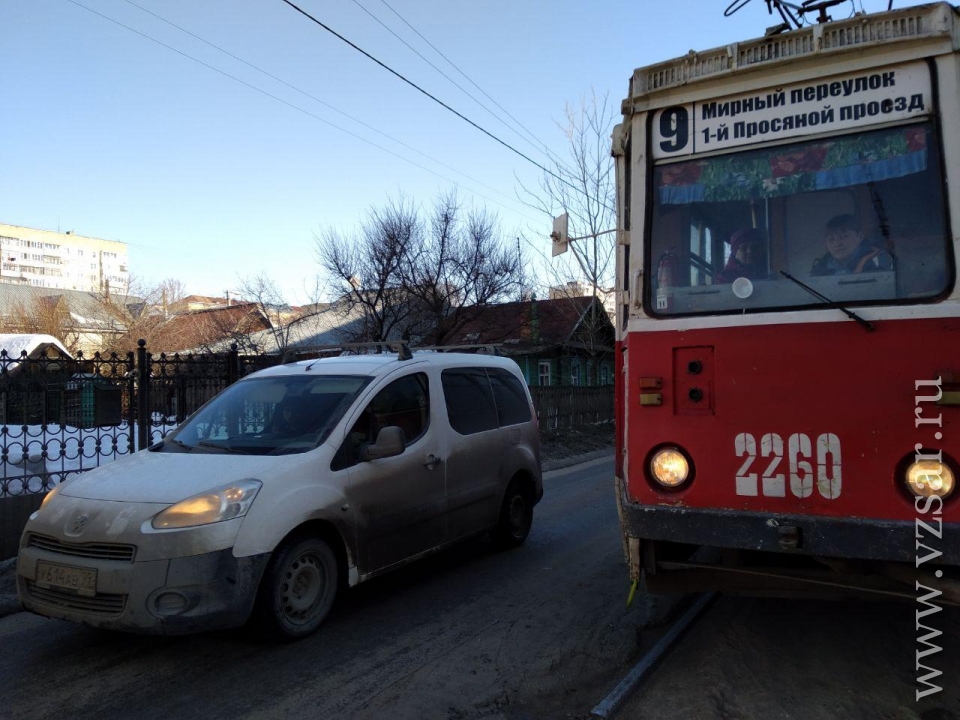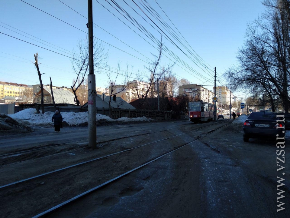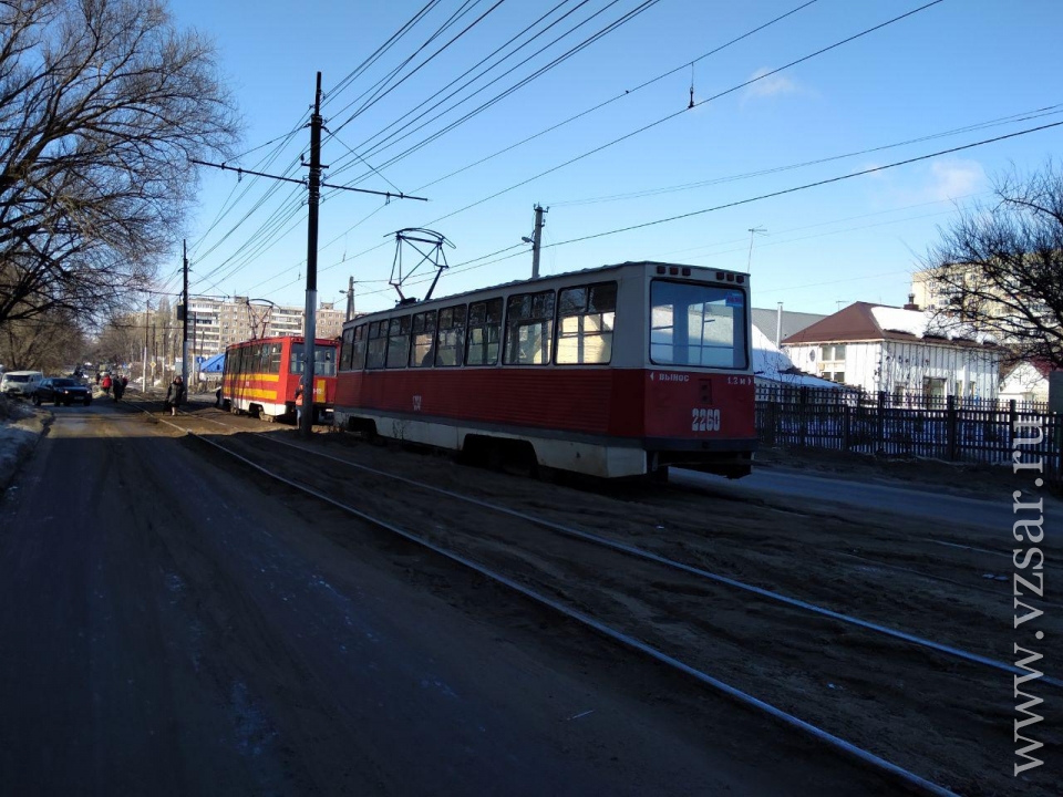 Сегодня в Заводском районе Саратова у остановки "1-й Просяной проезд" на улице Огородная встали трамваи двух маршрутов - № 9 и № 7.