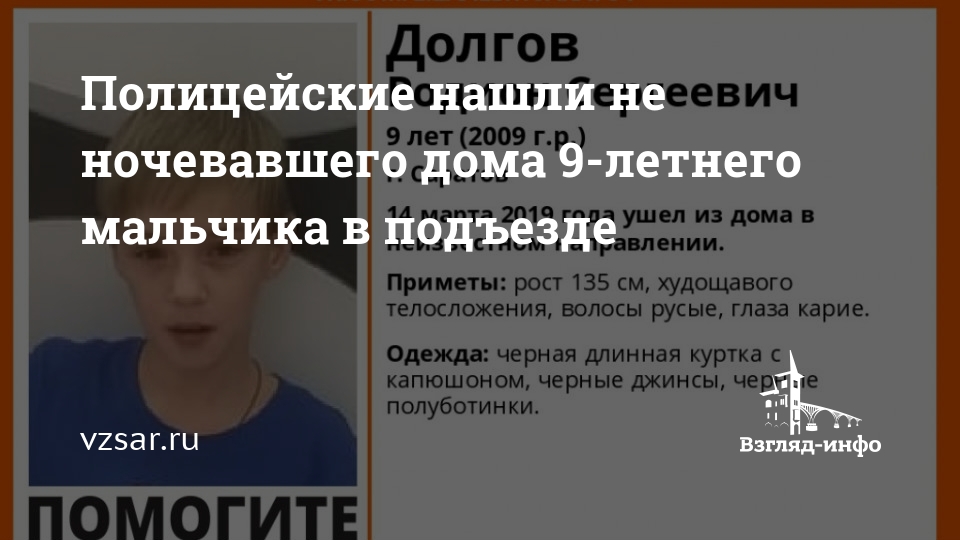 Вчера вечером в полицию обратилась мать 9-летнего Родиона Долгова, которая сообщила о его пропаже. Женщина пояснила, что утром ребенок ушел в школу и не вернулся домой. Сама она найти сына не смогла.