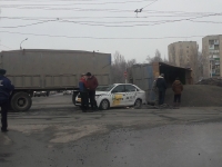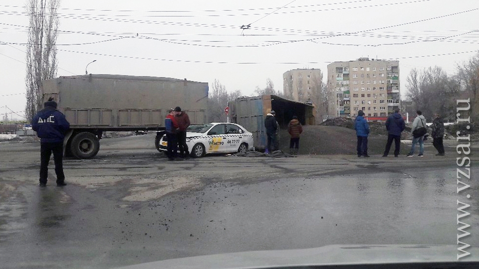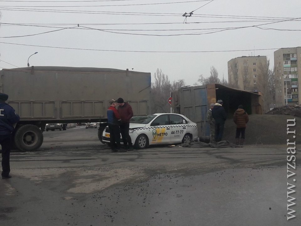 Сегодня в Балакове в ДТП встретились большегруз и такси. Фотографии очевидцев появились в группе “На дорогах г. Балаково”.