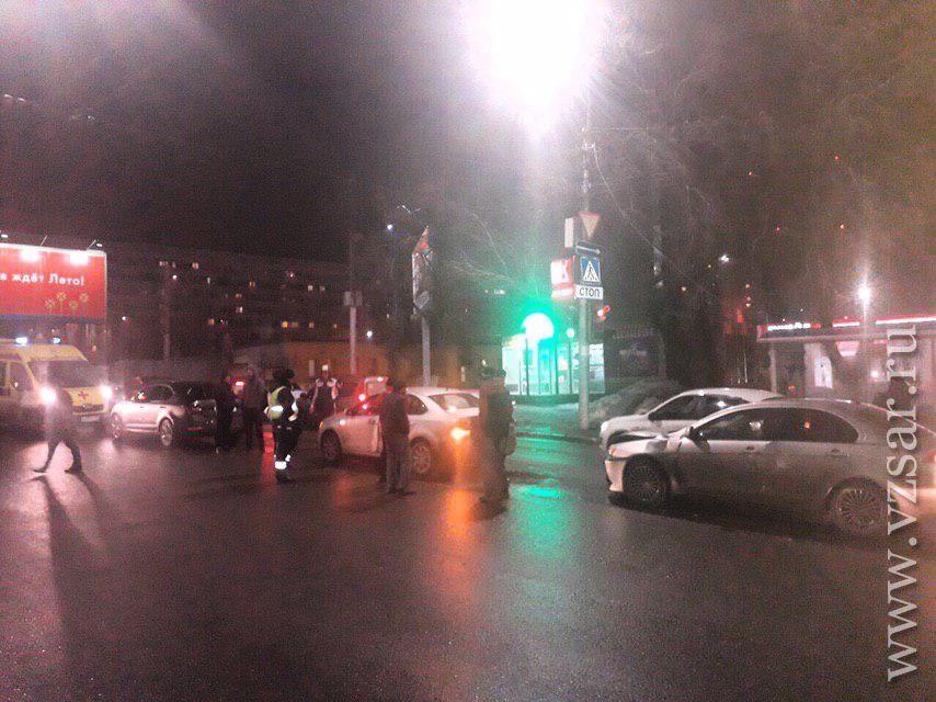 Сегодня вечером в Волжском районе Саратова в ДТП "встретились" пять автомобилей. Об этом сообщает городская Госавтоинспекция.