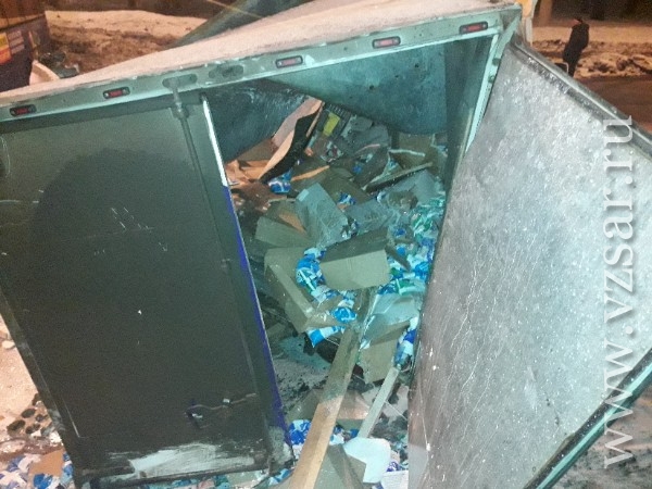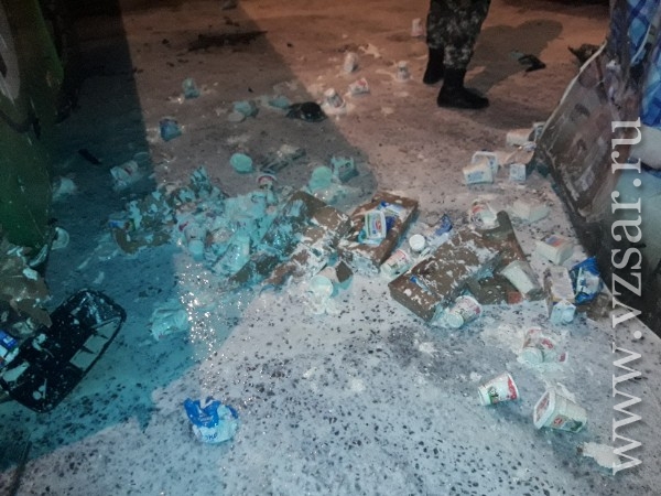 Упаковки с творогом и сметаной разбросало по всей обочине.