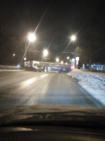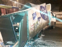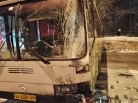 ДТП произошло у дома № 58 по улице Шехурдина. Очевидцы поясняют, что автобус занесло на дороге, и он врезался в грузовик. В результате у автобуса разбито лобовое стекло со стороны водительского сиденья, а у "Газели" полностью раскурочен кузов.