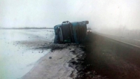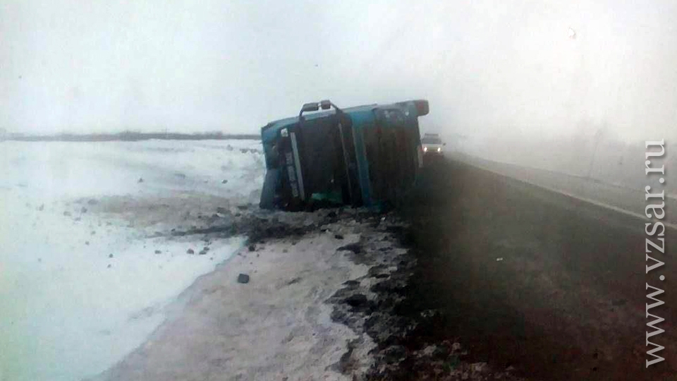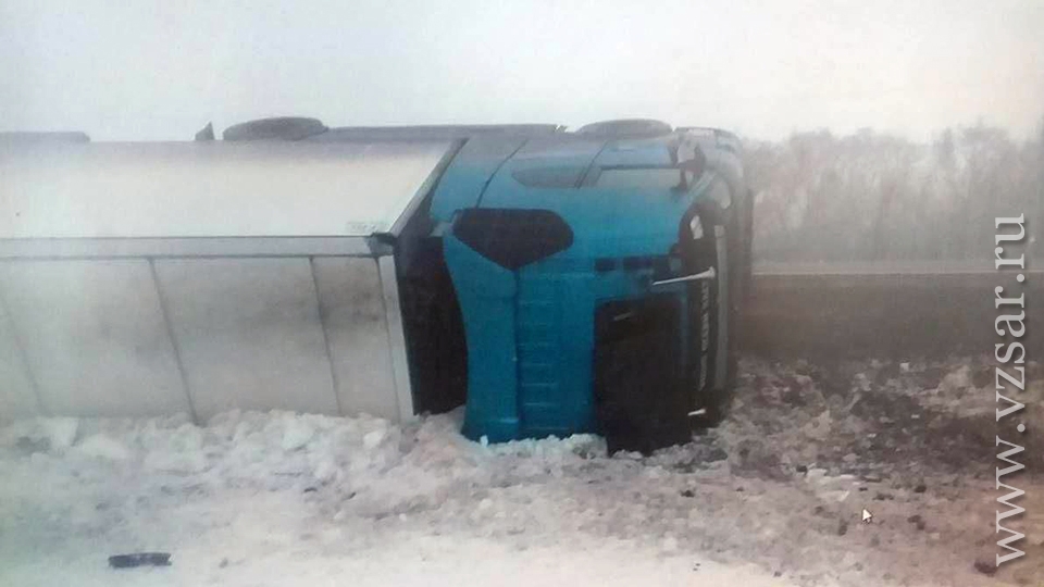 В 22.30 на 525-м километре автодороги "Р-22 "Каспий" Дон – Тамбов – Волгоград - Астрахань 67-летний водитель автомобиля "Вольво" с полуприцепом "Шмитц" с номерами Ростовской области не справился с управлением и съехал в кювет по ходу движения. После этого фура опрокинулась.