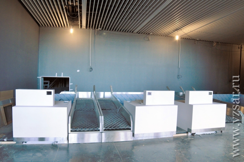 Около каждой стойки регистрации смонтированы двухступенчатые конвейеры для маркировки и взвешивания регистрируемого багажа. Количество установленных стоек позволит обеспечить регистрацию более 500 вылетающих пассажиров в час.