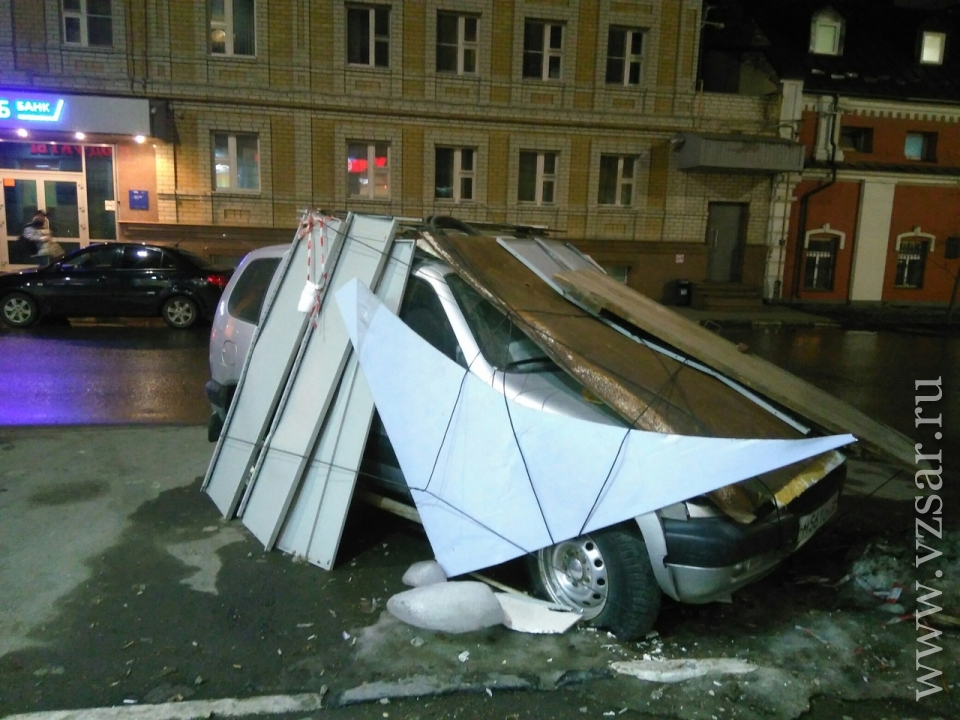 Периодически падающие с саратовских крыш наледь и кирпичи вынуждают автомобилистов защищать свои машины.
